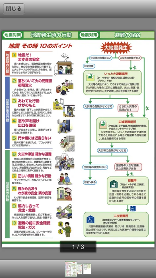 インターネット通信環境がない状態でも、GPSを利用して最寄りの避難所や避難場所などを確認することができます。