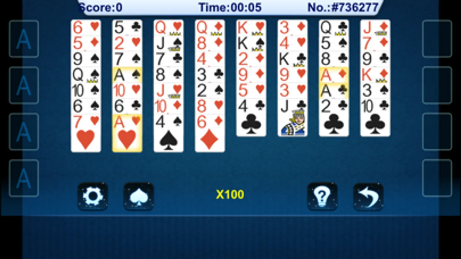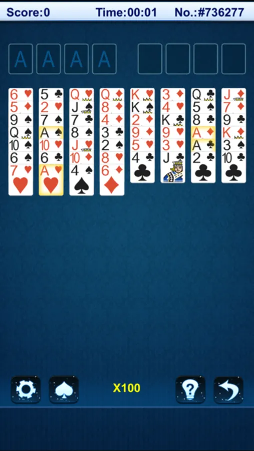 In this FreeCell game, you can move cards with a single tap or drag them to their destination. The aim is to move all cards to the foundation piles. Use the free cells and unlimited hint feature at any time.