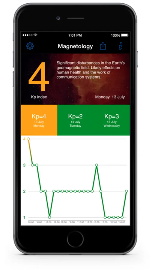 «Magnetology» is an application which permits one to watch the forecast of geomagnetic storms and the state of Earth´s geomagnetic field.