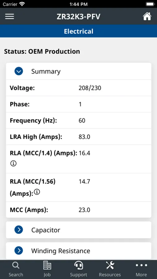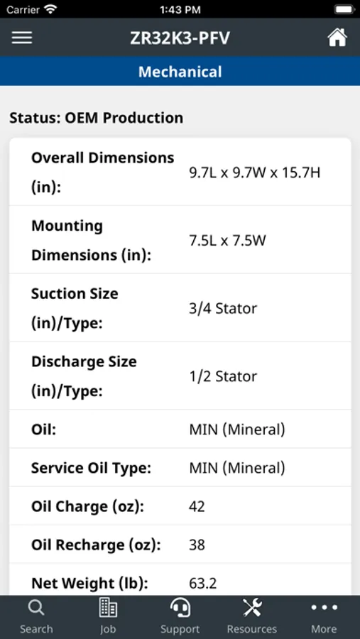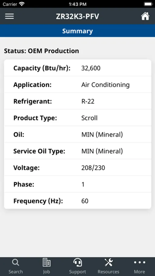The Copeland Mobile smartphone app provides on-the-go access to Copeland's online product information (OPI) database for Copeland product specifications. This database includes both air conditioning and refrigeration products used in a variety of HVACR applications. Simply start by logging in with your current OPI username or register for a new account through the app. Next, enter at least 3 characters of the model nomenclature to activate an auto fill recommendation listing for model selection. Once a model and application are selected, choose from a variety of options within the home menu screen to search for information pertaining to that specific model. This app’s focus is to bring access of the OPI database directly to the HVACR service industry.