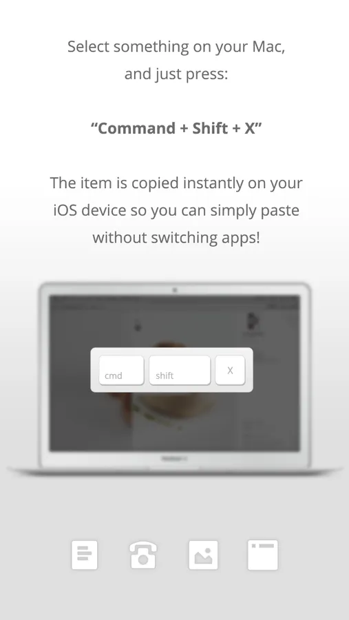 Select text, links, numbers or small images, and simply press “COMMAND + SHIFT + X” to instantly transfer your selection from your Mac to your iOS Device.