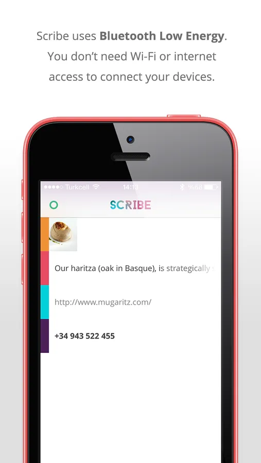 Since it doesn't rely on Wi-Fi, Scribe doesn't require a network connection to work. All you need are the devices you are already using.