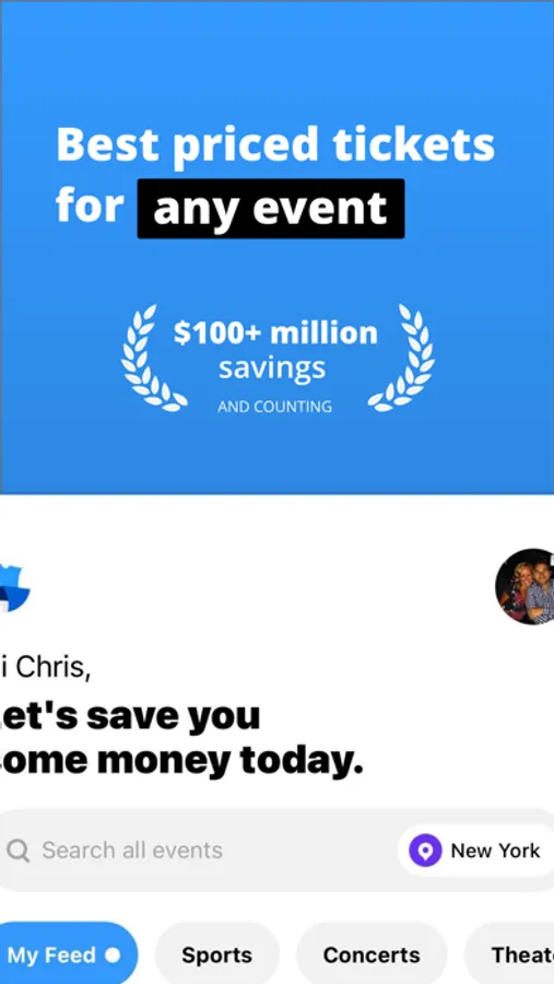 It makes it simple to buy tickets to live events. All it takes is a few taps to buy no-fee tickets to all events.