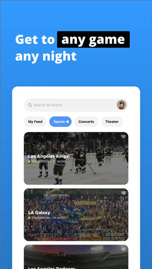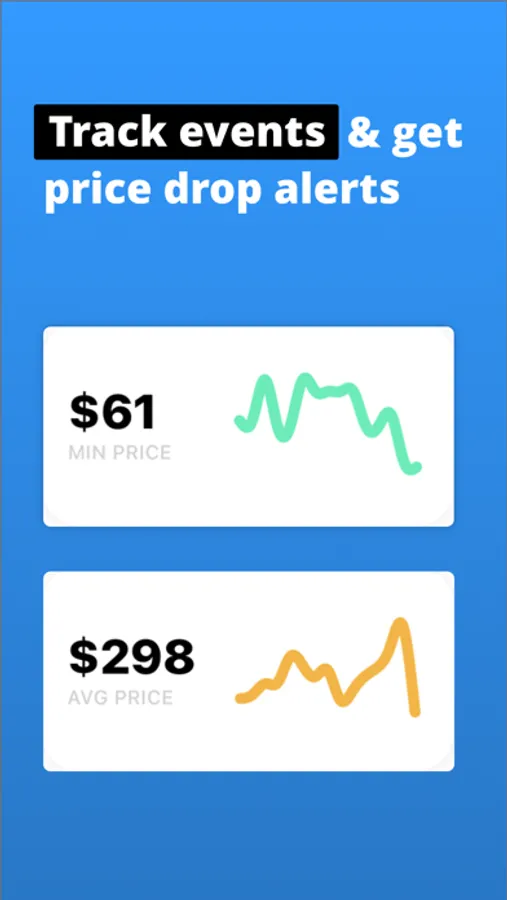 Track Events – Not ready to buy? Keep track of average ticket prices and available inventory for any event, so you can make an informed decision and buy when you're ready.
