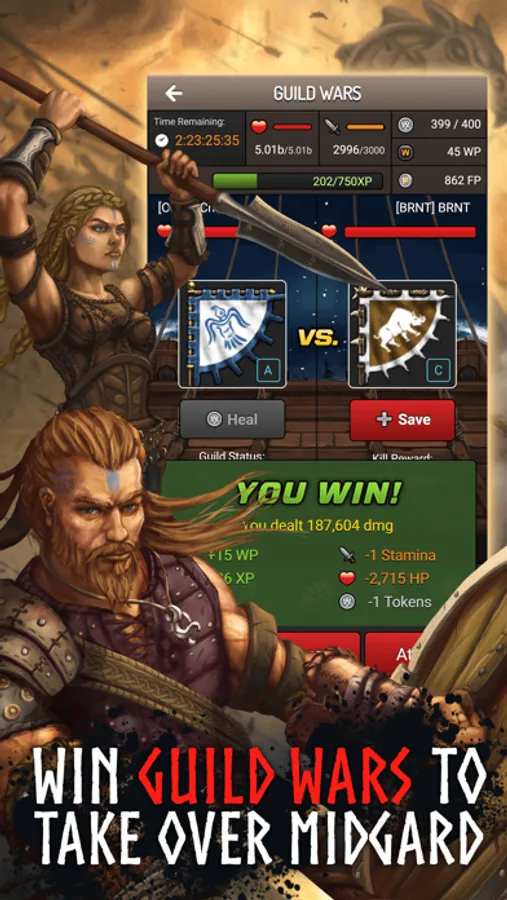 Unlike other classic Viking text games, you can prove yourself worthy of Asgard in Viking Clan, dethrone and clash against the Gods themselves. Become the best Viking Warrior the Nine Realms have ever seen!