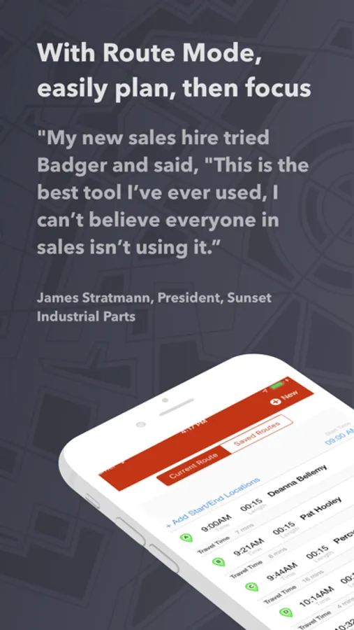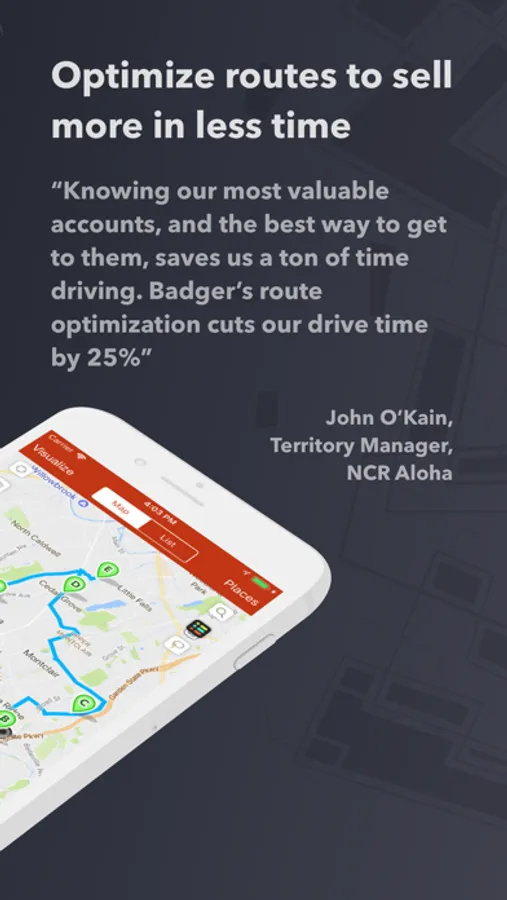 With Badger, a field sales rep has 10 more meetings a week, saves 3 hours behind the wheel, and cuts time spent on frustrating admin work by half.