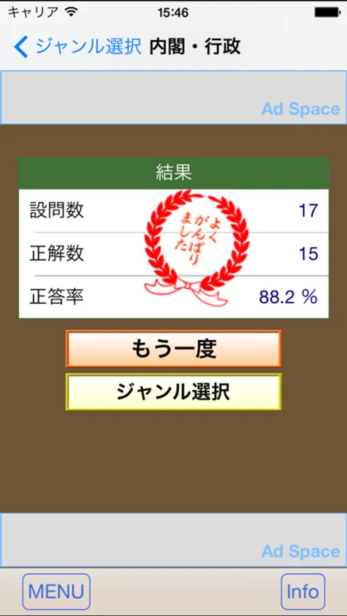 クイズ終了時には正答率が表示されます。また、一度正解した問題を表示せず、誤解答問題のみを効率よく解いていく機能も備えています。