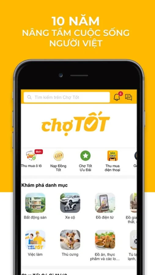 Bất kể thứ nào bạn cần trong từng giai đoạn cuộc đời, đều có thể tìm tại Chợ Tốt. Ngoài trang recommerce, rất nhiều ngành hàng chiến lược được tích hợp vào ứng dụng Chợ Tốt để giúp bạn tìm việc làm, sắm sửa đồ đạc, mua nhà mua xe: