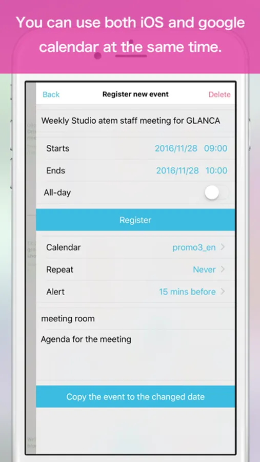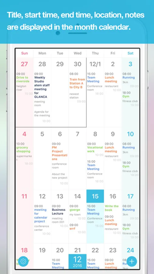 - Start time, end time, place, memo, and so on are all displayed (No need to switch calendars).
