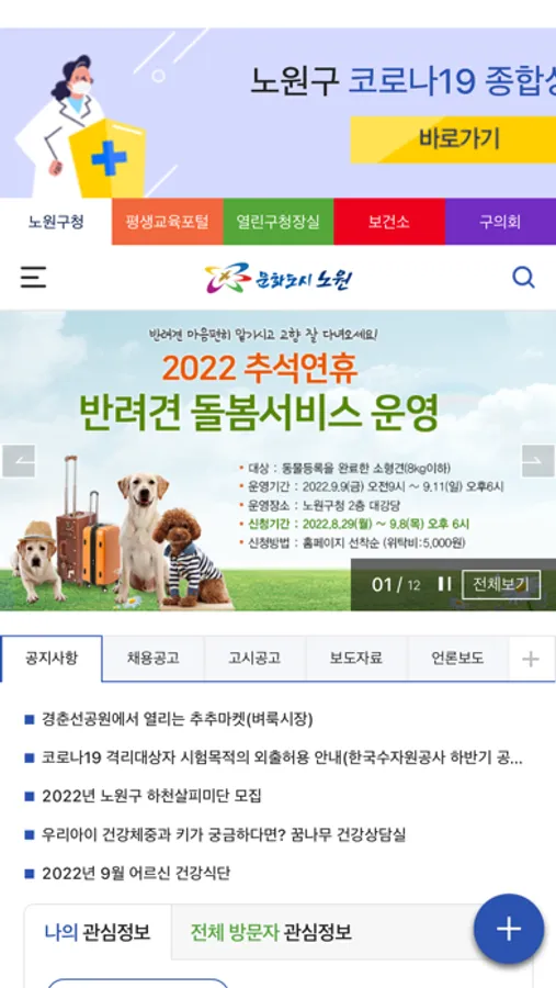 노원의 행사, 강좌, 일자리 등의 생생한 정보를 실시간으로 제공하고