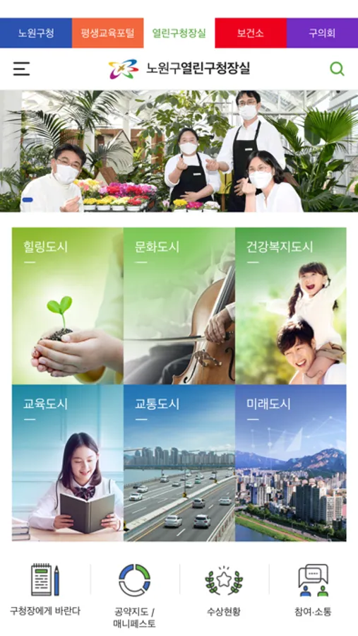 내 손안에 모바일 “스마트노원” 앱으로 노원의 정보를 쉽고 편리하게 확인하세요.