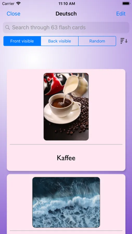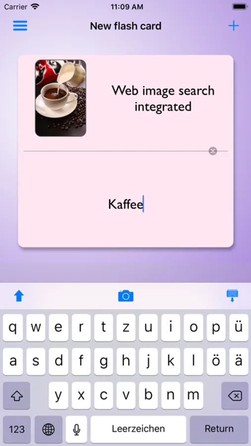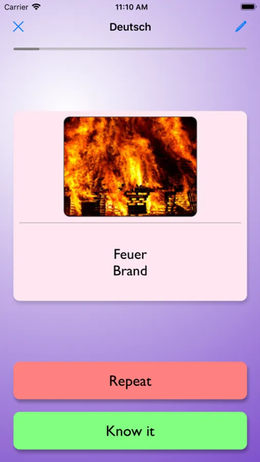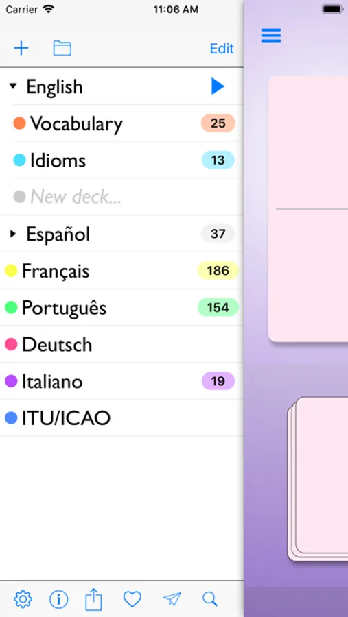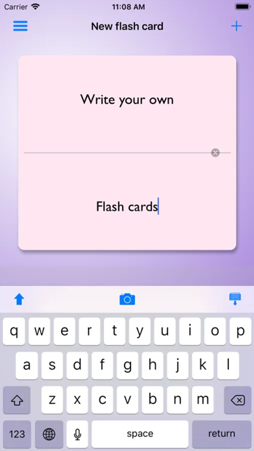 Intelli Flashcards was designed to be used every day by someone, who learns foreign language. I’m aware of the fact, that average user would add 1500+ flashcards on his learning path. He might be outdoors and in a rush, so the process of creating a new flashcard is 0 clicks away - it’s right on the main screen! The repeating session is just 1 click away.
