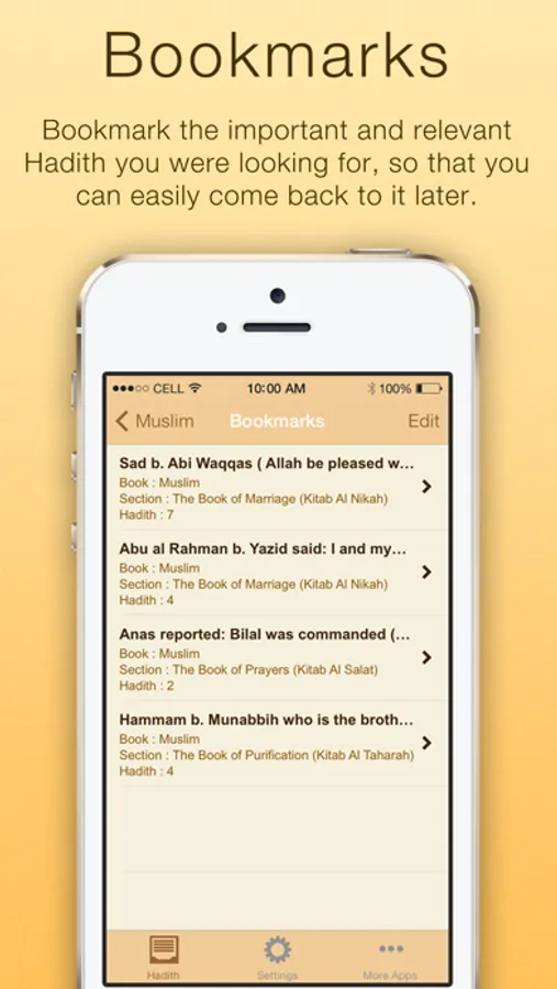 Beautiful sayings of our beloved Prophet Muhammad (S.A.W). Access thousands of Hadith from a collection of four Authentic Hadith Books: