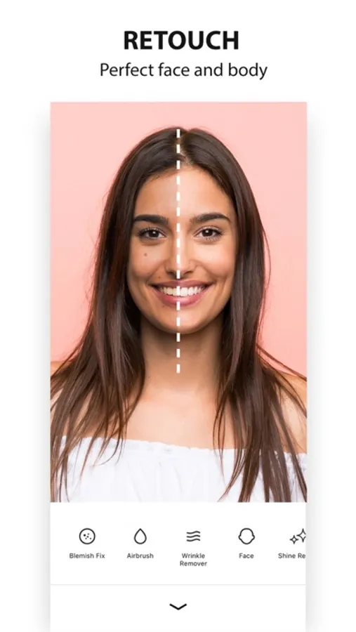 Moreover, the photo editor features embedded functions for all the necessary types of face retouching and body shape adjustment. This makes it possible to always easily eliminate any imperfections with high quality.