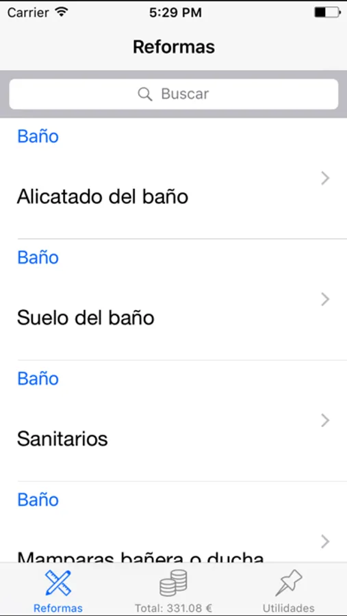 Desde esta sección, podrás seleccionar fácilmente el tipo de reforma que deseas realizar. Para mayor comodidad, puedes usar el buscador que hemos integrado deslizando la lista hacia abajo.