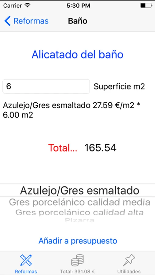 Una vez que tengas el precio podrás usar el botón de “Añadir al presupuesto” para guardarlo y seguir con las reformas.