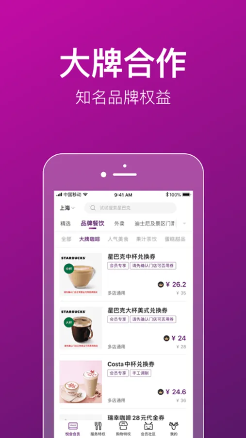 【大牌咖啡】星巴克Costa太平洋三大咖啡品牌,5折起会员专享价;