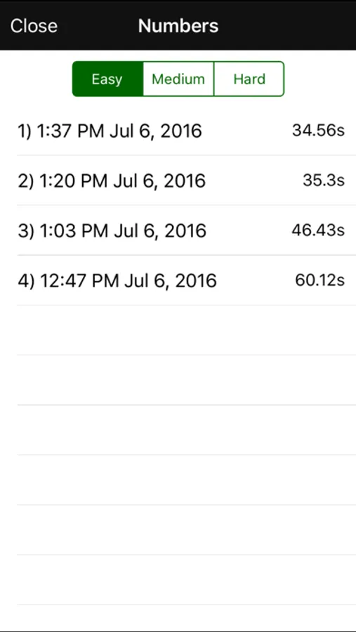- Numbers: Easy, Medium, Hard