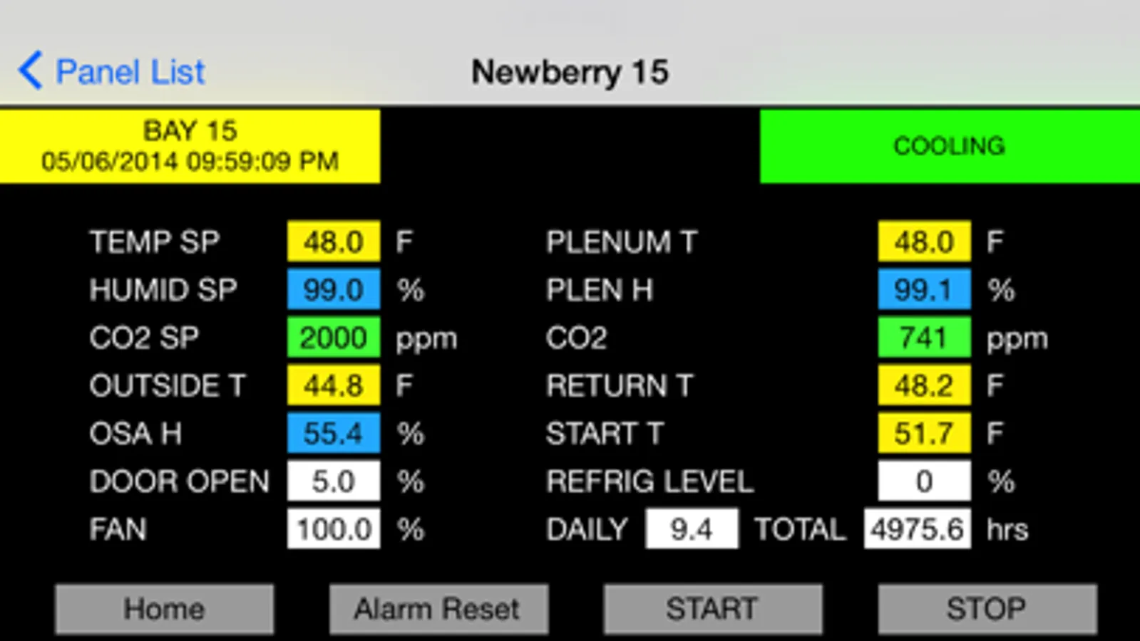 The BTU XT app is designed to provide the storage manager with a simple and easy human machine interface (HMI) to view and control the environment in multiple agriculture storages.