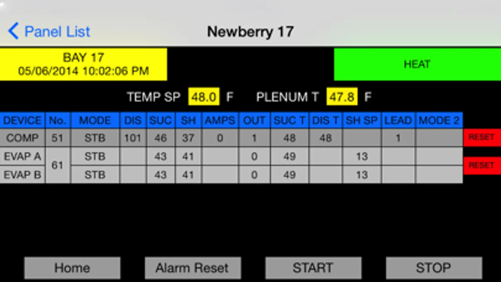 This is a secure interface using a user name and password. Once logged in, the app will display the status and main parameters of all authorized units on a main summary page. Each unit can then be selected and multiple displays will show all data and status of equipment. Pages are selected by swiping sideways. A single touch will bring back the summary page at any time.