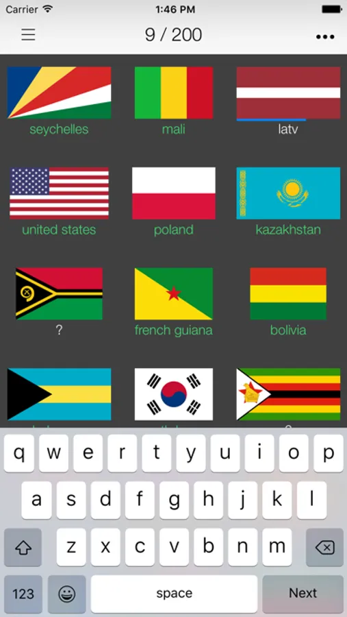 Test your knowledge by entering country names or tapping the correct country's flag to answer.