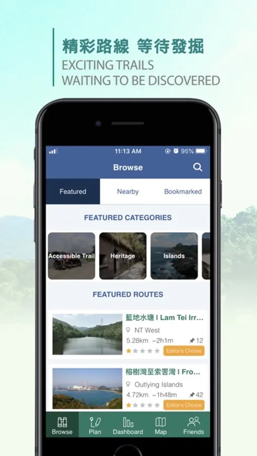 Browse routes: Find feature trails or routes near you and bookmark them—or customise them to suit your needs! Search for featured and routes near you and start tracking, or modify and bookmark them to suit your preferences