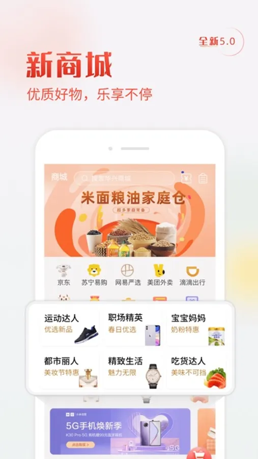 华兴手机银行5.0,全新来袭。“5”重升级,更多精彩。