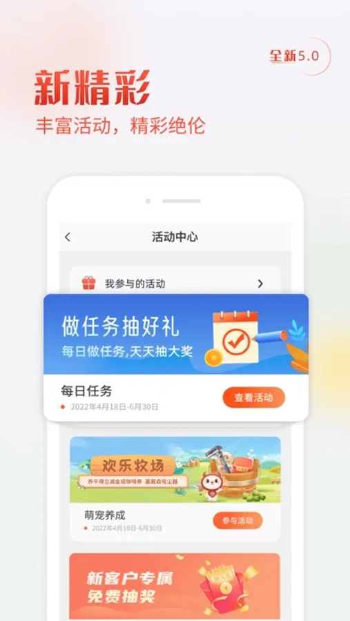 新精彩:丰富活动、精彩绝伦。更多活动同步上线,可实时掌握开户网点活动,玩法多多,等您来发现。