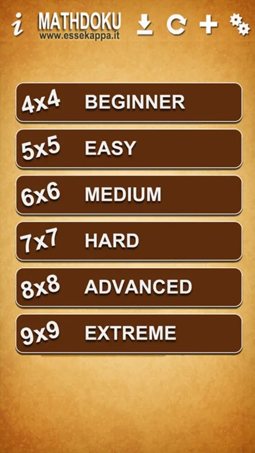 The games are available in 6 formats: 4x4 (Beginner), 5x5 (Easy), 6x6 (Medium), 7x7 (Hard), 8x8 (Advanced) and 9x9 (Extreme)