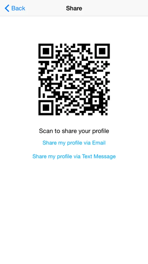 You can share your RedCritter profile via QR Code, Text Message or Email.