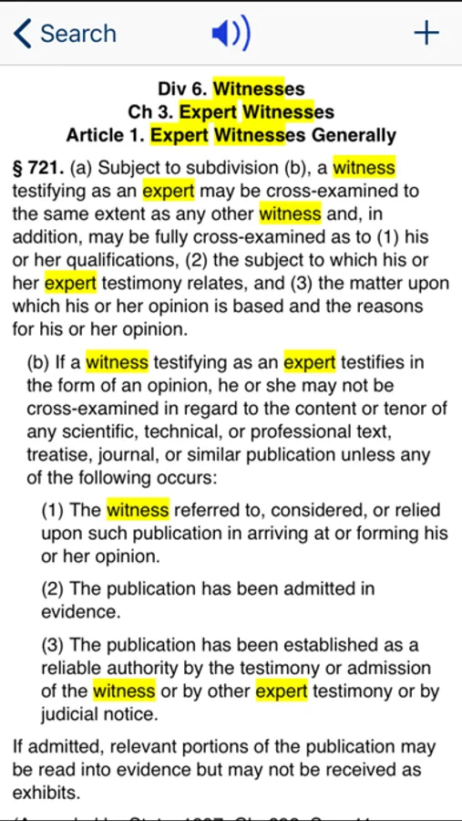 This application provides the full text of the California Evidence Code in an easily readable and searchable format for your iPhone, iPad or iPod Touch.