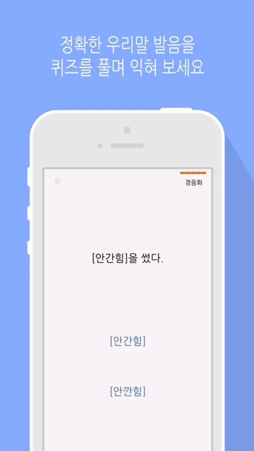 ‘바른 발음’은 일상 생활에서 자주 쓰지만 그 발음이 종종 혼동되는 단어들을 선정해 정확한 발음법을 퀴즈를 풀며 익혀 가는 교육용 앱입니다.