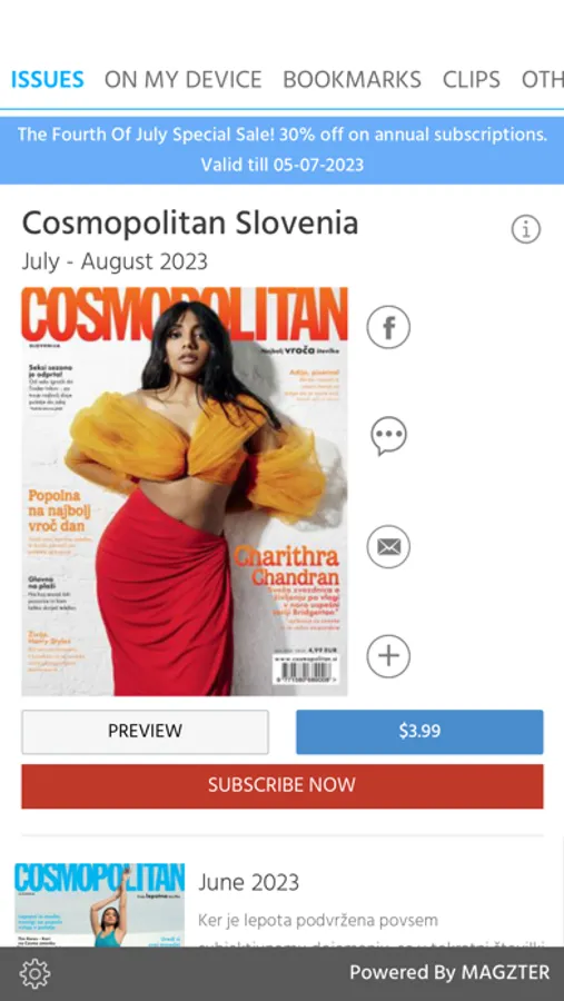 Vroči dnevi, dolge noči in zato najbolj pikantne zgodbe, ki te bodo v tokratnem Cosmopolitanu spremljale vse poletje. Dvojna številka je polna nasvetov za kar bolj uživaško in varno poletje, seveda pa ne manjka tudi sočnih pripovedi s počitniških avantur. Z naslovnice te tokrat pozdravlja fenomenalna Charithra Chandran, zvezdnica serije Bridgerton, ki v intervjuju razkrije, kako se je njeno življenje spremenilo po uspehu te odmevne Netflix serije.