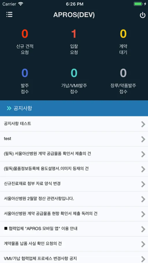 발주조회 납품 등록, 장루/약품/정량불출접수/ 검수 조회를 진행 할 수 있습니다.