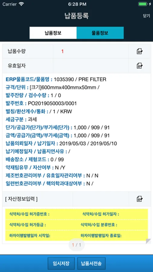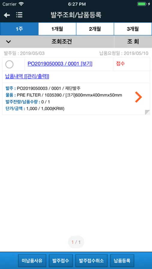 미 납품 현황 및 검수 현황 상세 정보를 조회 할 수 있으며