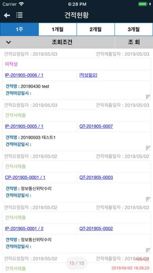 견적형황을 조회하고 견적서를 등록 할 수 있습니다.