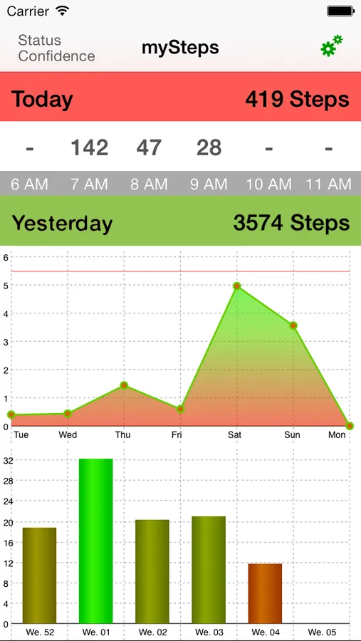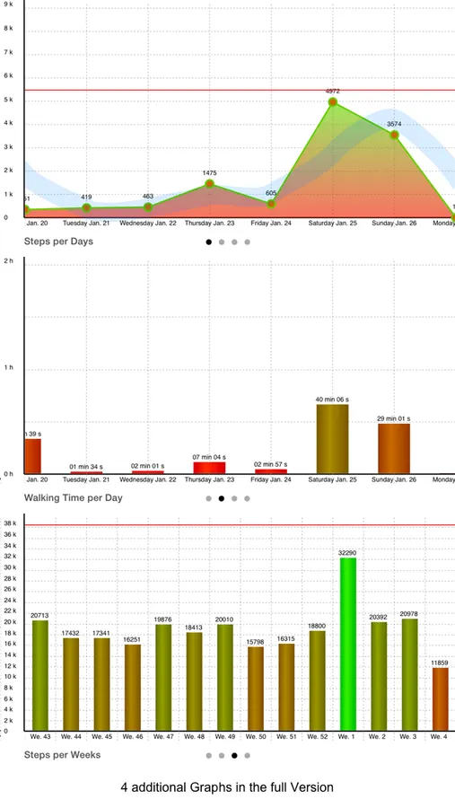 myStepss uses the iPhone 5s new M7 Processor to keep track of your daily movements. Various Graphs show your Steps for the current day as for past once, with the relative values for movement type.