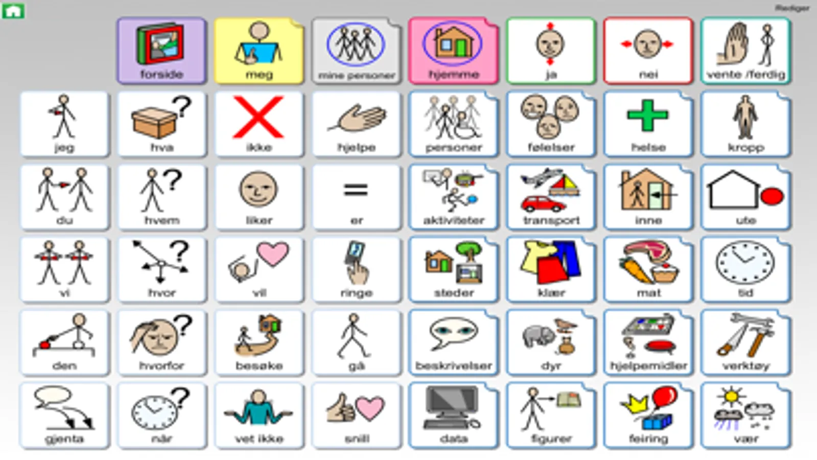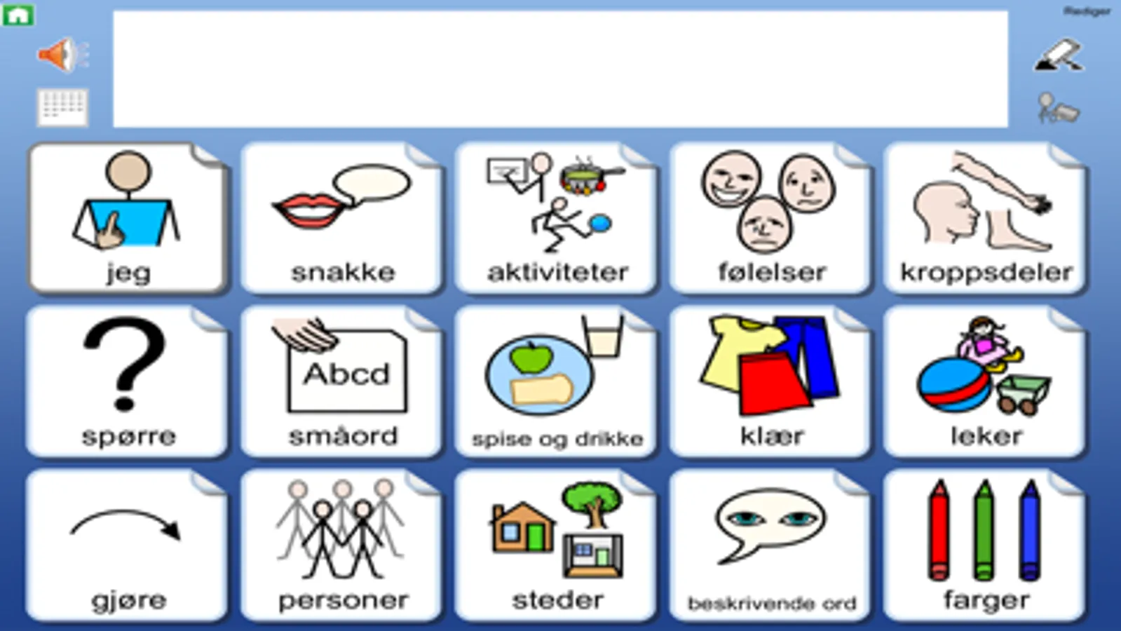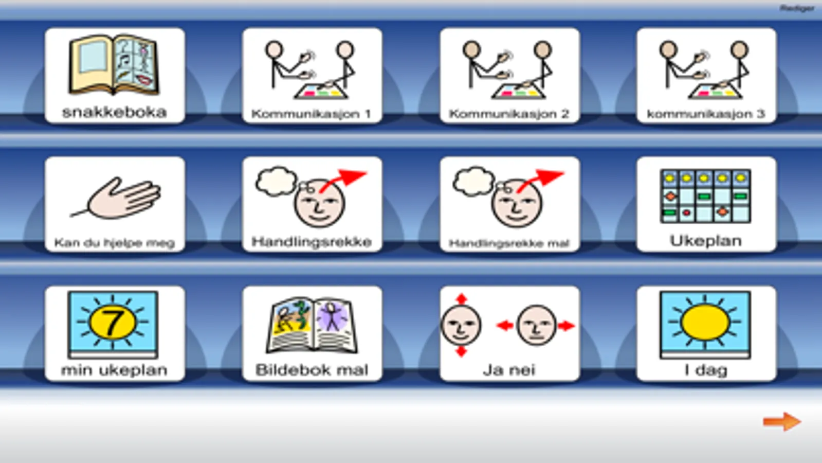 I Widgit Go kan du opprette og redigere kommunikasjonsmiljøer som passer for forskjellige brukere for å støtte språkutvikling og kommunikasjon.