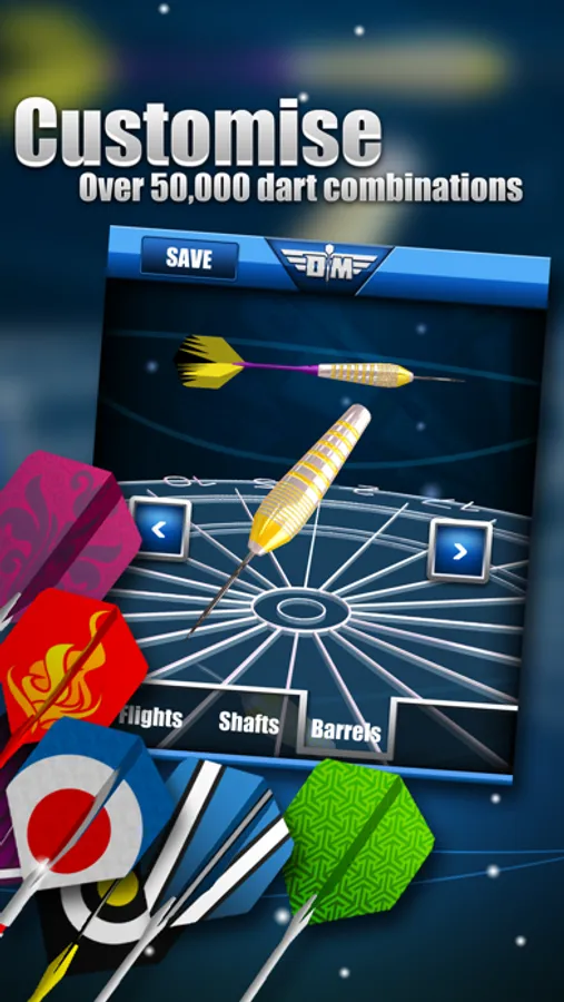 • Customise your darts in the store, over 50,000 combinations of flights, shafts and barrels.