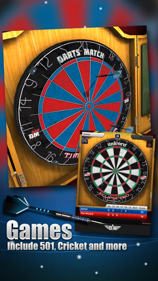 • Play Classic games of 501, 301, Around the Clock, and Cricket