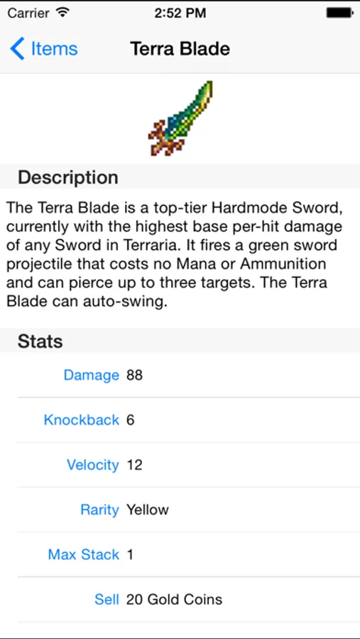This app is not affiliated with Re-Logic or 505 Games. Thanks to Andrew "Redigit" Spinks for such a great game.