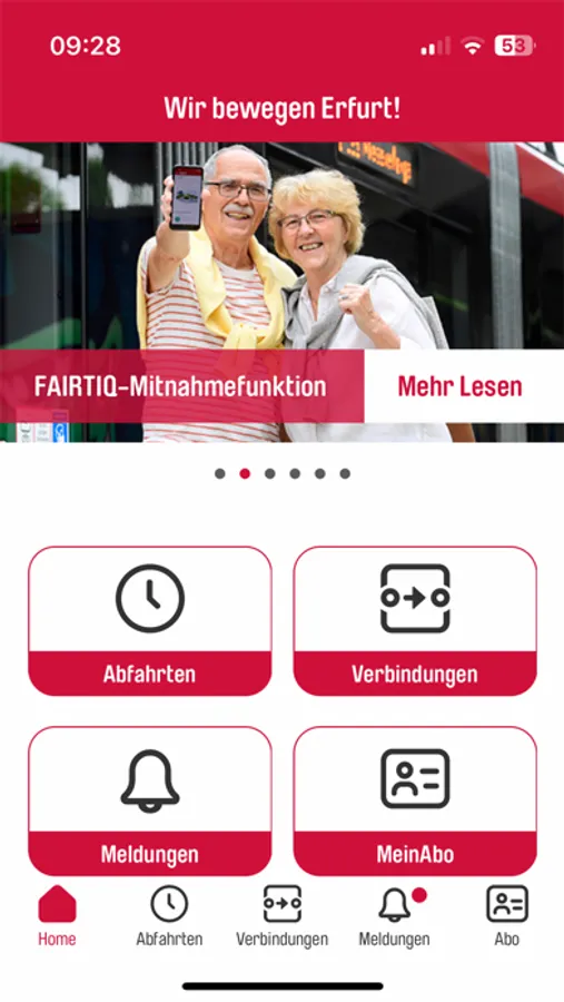 Holen Sie sich jetzt die kostenlose Fahrplan-App der EVAG! Mit Erfurt mobil haben Sie Routenplaner, Echtzeit-Fahrplanauskunft und Aboverwaltung unterwegs immer mit dabei. Schnell die nächste Abfahrt anzeigen lassen oder die beste Verbindung für Stadtbahn und Bus finden? Mit der EVAG-App kein Problem! Damit sind Sie einfach und clever mobil. Abonnenten können ihr EVAG-Abo einfach und schnell selbst online verwalten und persönlichen Daten jederzeit und überall ändern und in ein anderes Abo-Produkt oder eine Tarifzone wechseln.