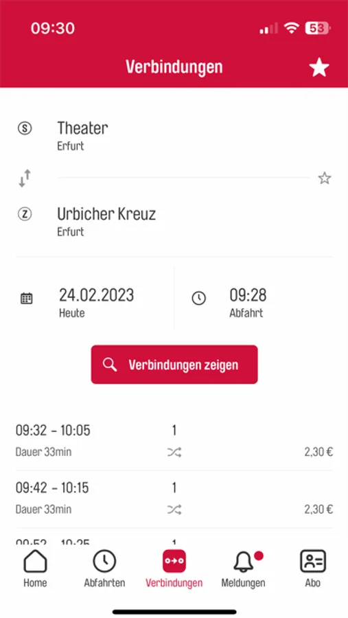 - aktuelle Meldungen zu Fahrplanänderungen und kurzfristigen Störungen auf der Strecke - auch als Push-Nachricht