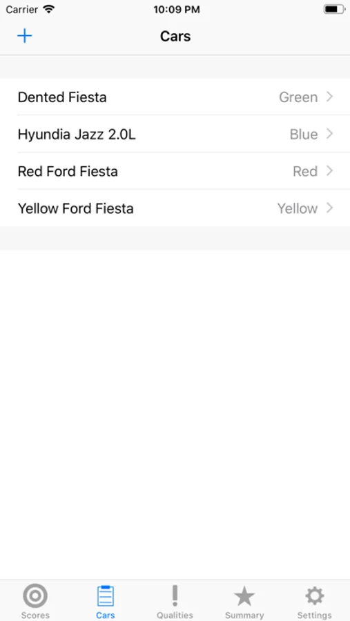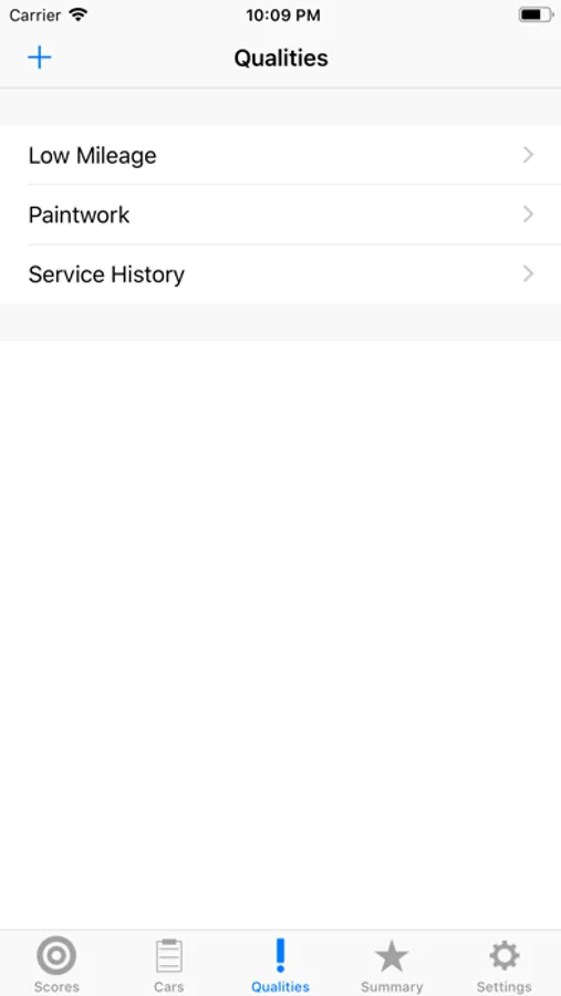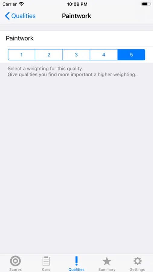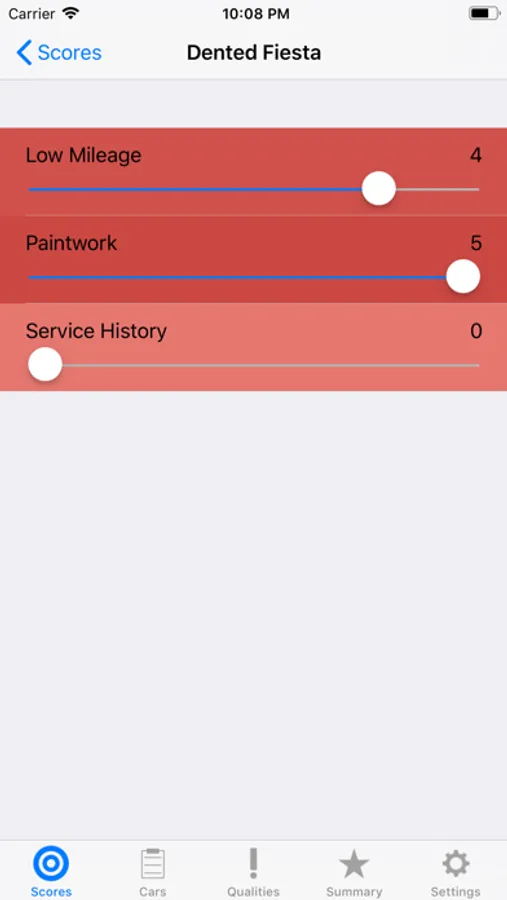 Once you've added your decision making criteria it's easy to then score a particular car against each factor, from -5 very poor to 5 very good.