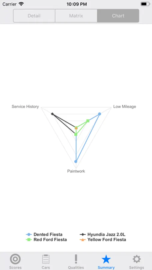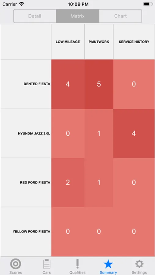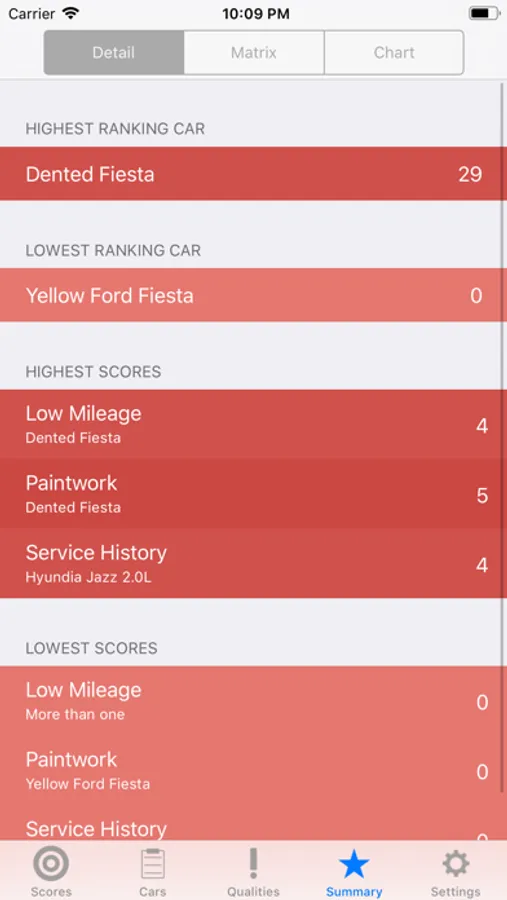 The app totals the scores for easy comparison and a summary page allows you to clearly see your optimal choice.