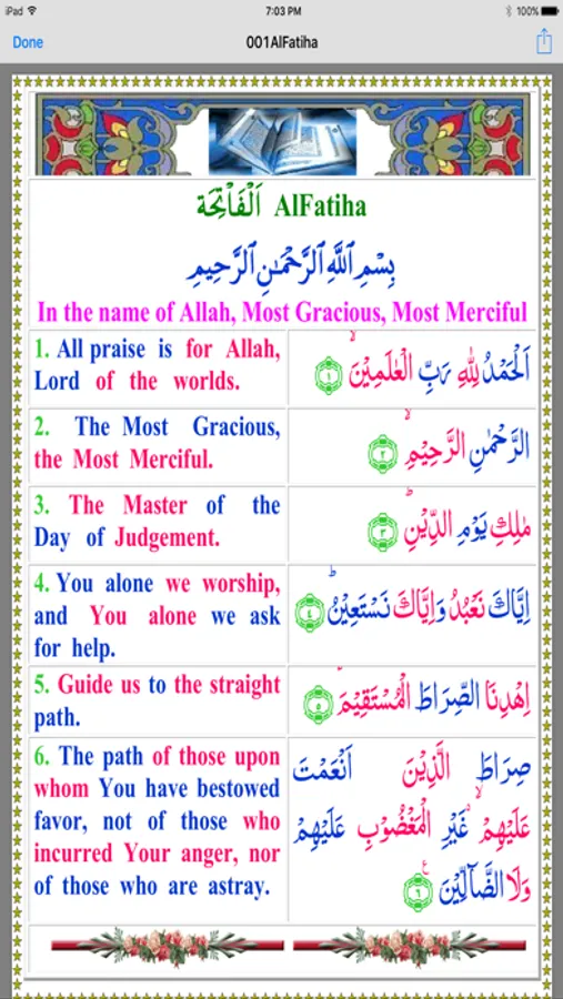 • Color Coded Arabic English Translation in contemporary English.