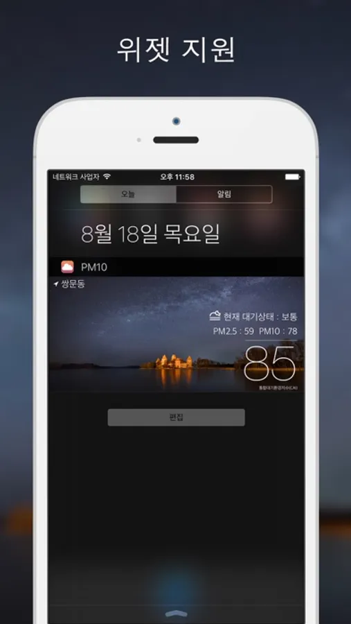 - 위젯 기능으로 좀더 쉽게 현재 대기 환경 정보를 확인 할 수 있습니다.