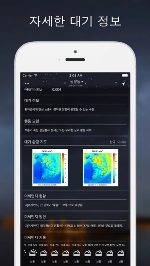 이 앱은 이러한 미세먼지의 예보 및 행동 요령 등을 미리 알려주어