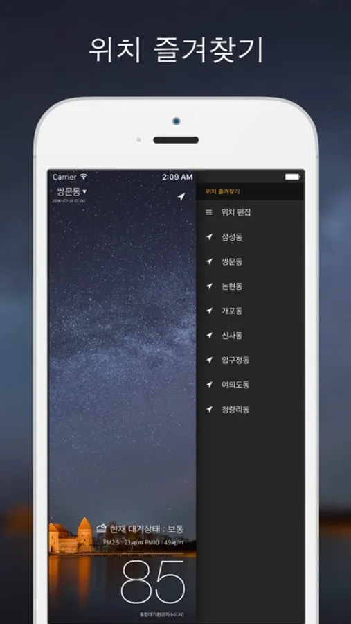 - 각 도시별의 미세먼지 농도를 손쉽게 확인할 수 있습니다.
