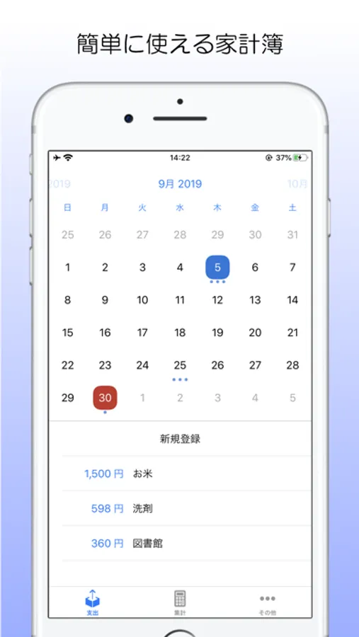 買い物をしたら、金額とカテゴリを選んで登録していきましょう。